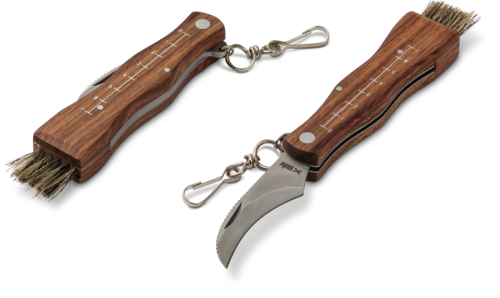 Kniven är försedd med borste som effektivt avlägsnar jord och annat skräp från svampen.